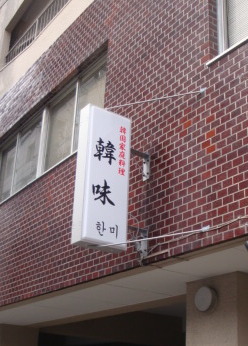 先日「韓味」様の袖看板の制作をしました。